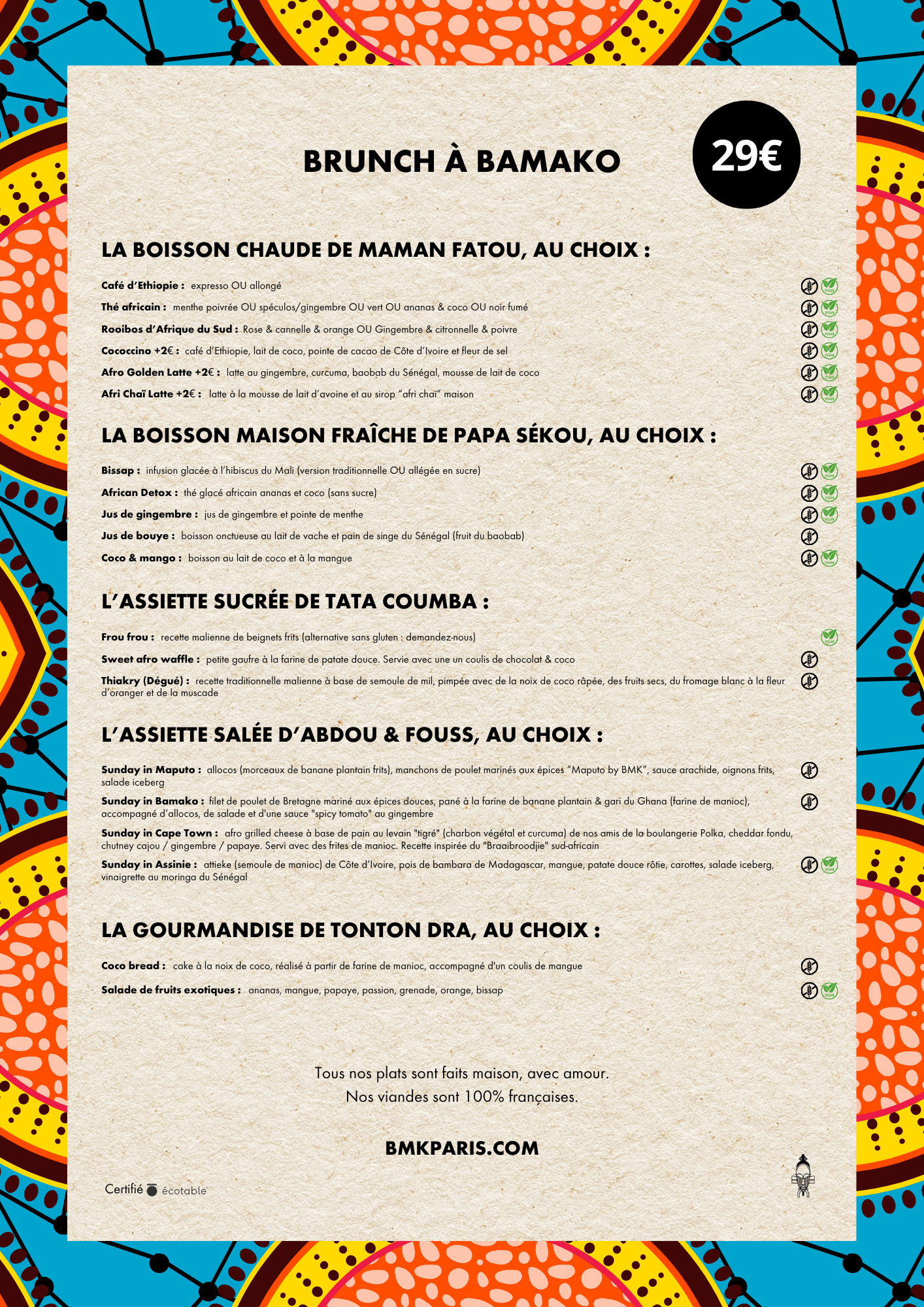 Le Brunch à Bamako, c’est tous les samedi et dimanche, à partir de 11h30h chez BMK Folie-Bamako (réservation recommandée) ! Que du bon, que du peps pour un afro brunch qui dépote !